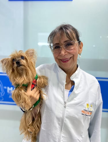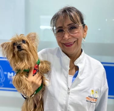 La Dra. Doris Mercedes Ramírez Moreno, médica veterinaria y fundadora de Mascotas Neiva, es reconocida por su habilidad en procedimientos quirúrgicos complejos y su dedicación al cuidado posoperatorio. Con más de 32 años de trayectoria, su enfoque en la salud integral de las mascotas la convierte en un pilar fundamental del equipo.